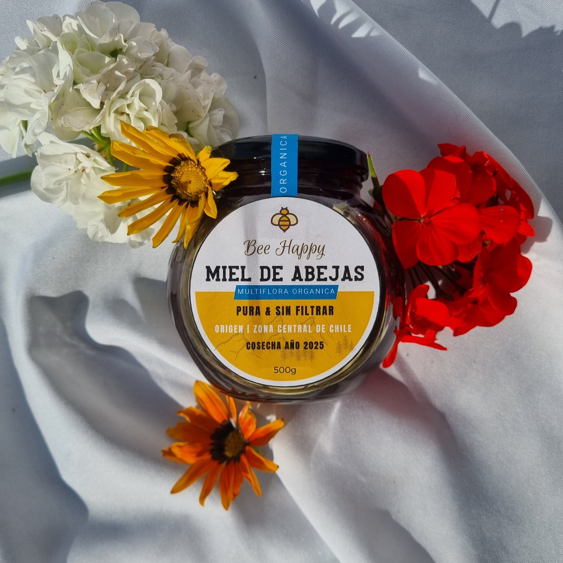 Una miel auténtica, recolectada de diversas flores silvestres de la zona central. De sabor complejo y equilibrado, con notas herbales y dulzura moderada.