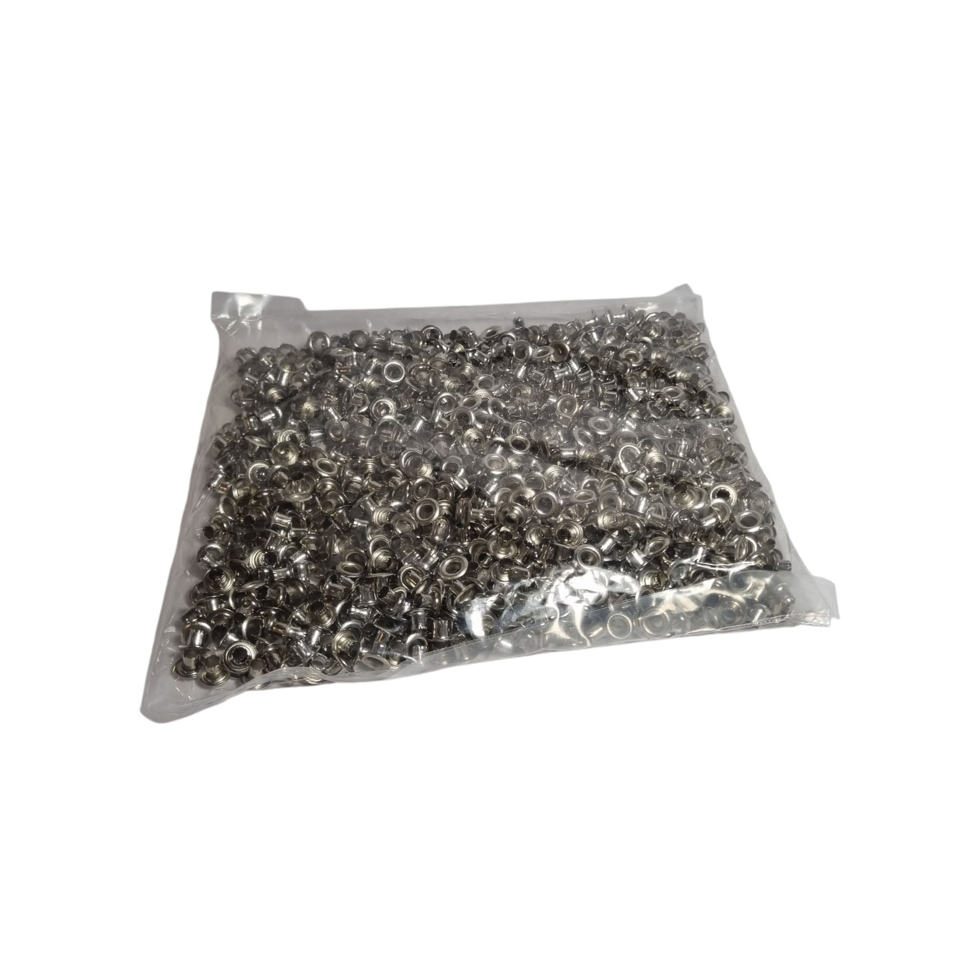 Ojetillo cilíndrico de acero galvanizado, diseñado para proteger los orificios de los marcos apícolas del desgaste producido por el alambre tensor. Su función principal es evitar el corte o debilitamiento de la madera durante el tensado y operación del marco.
