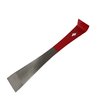 - Punta curva y biselada para fácil inserción entre marcos y partes de la colmena.